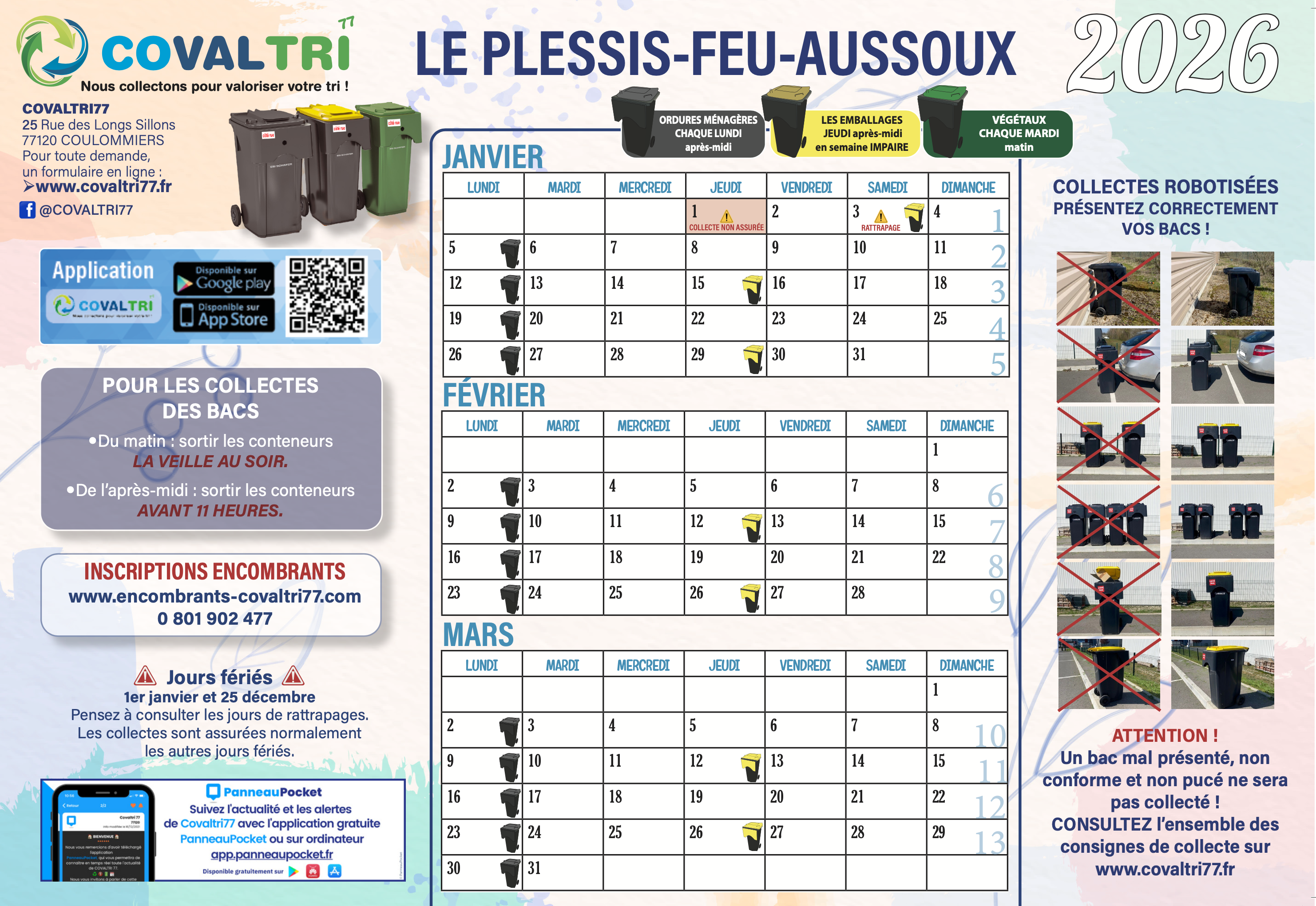 Vous trouverez ci-après les jours de collecte des différents déchets
