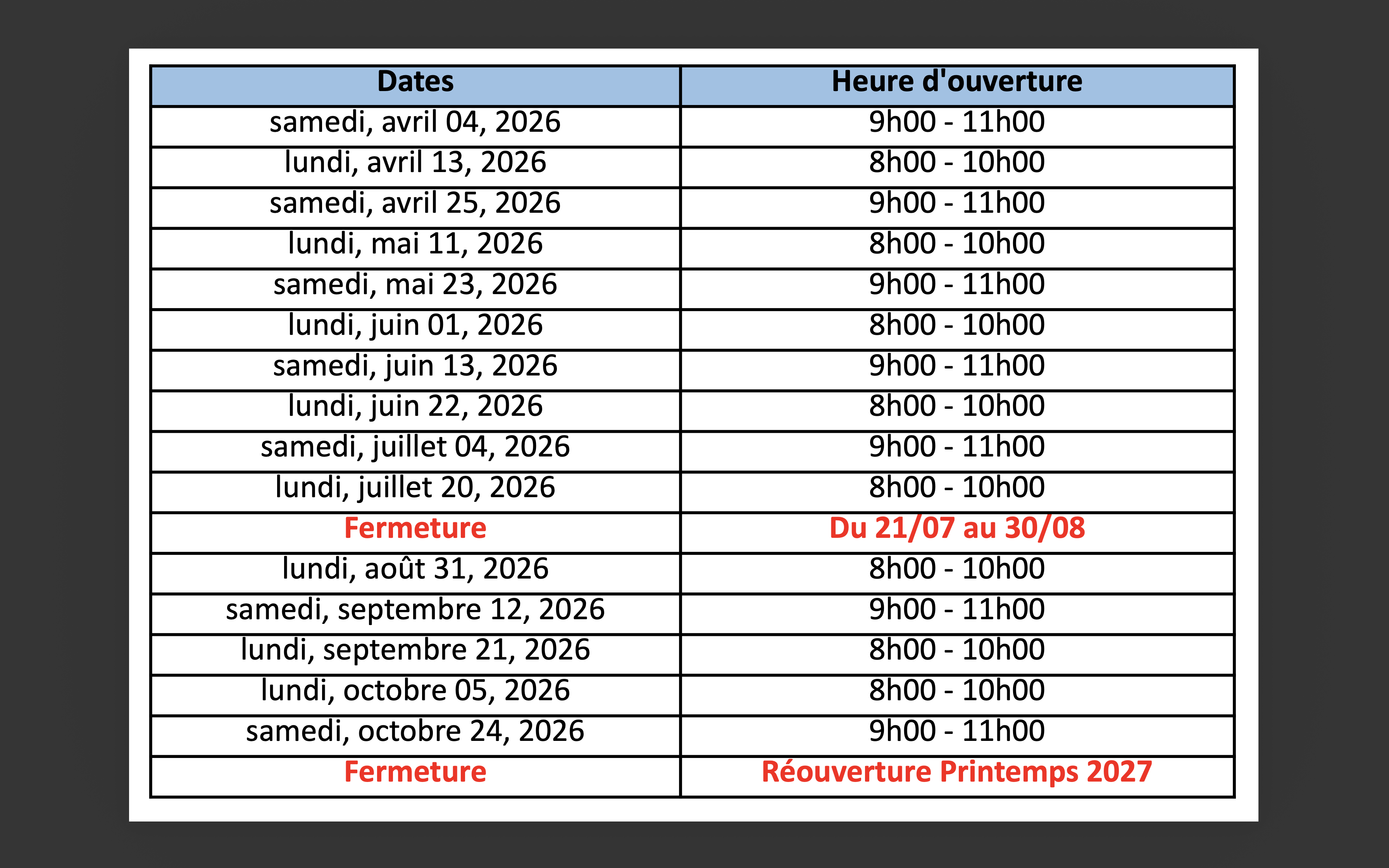 • Un passage par foyer par jour d’ouverture sera autorisé